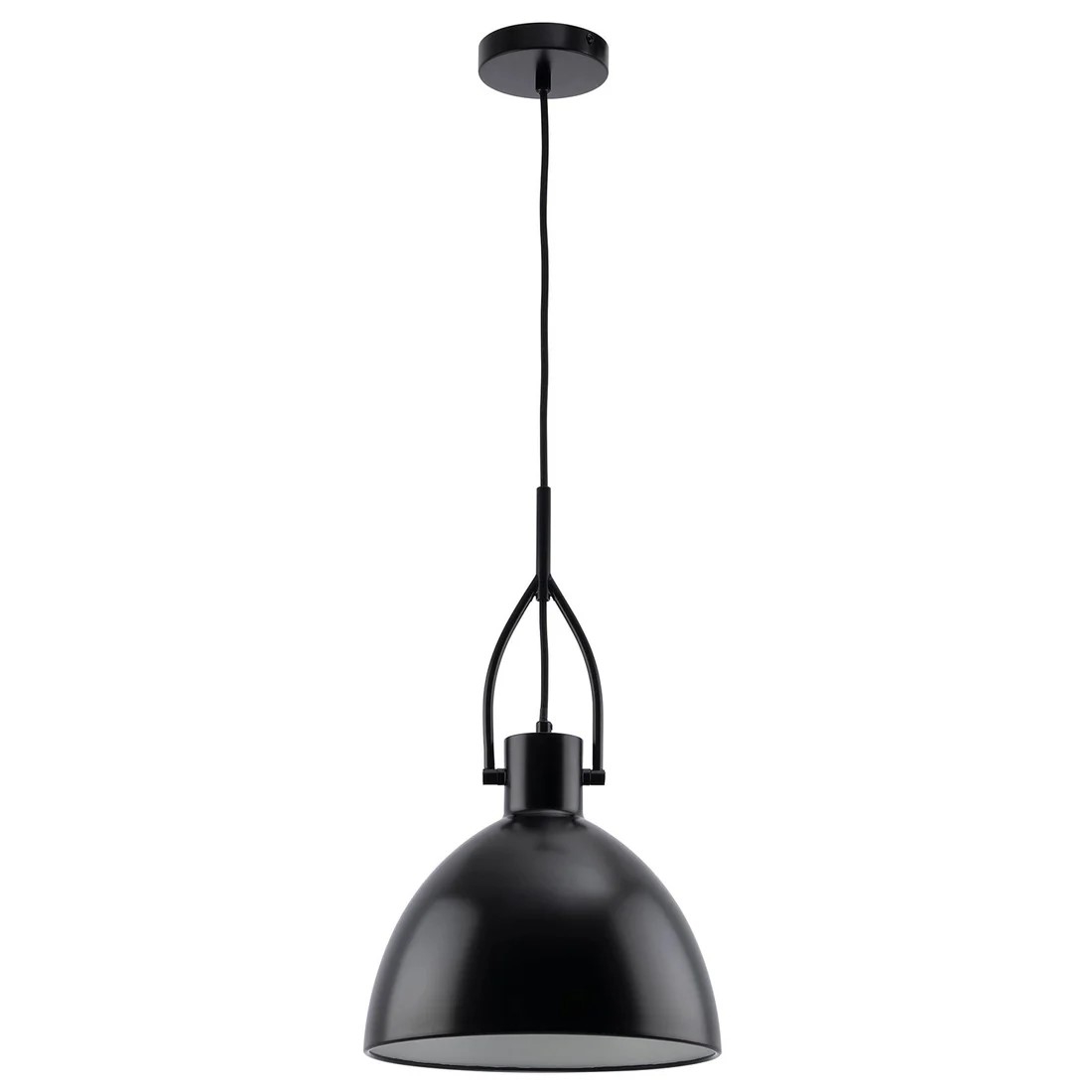 • Matt black metal shade with matching canopy and fabric cord,