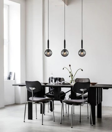 • Spherical glass pendant lights in bronze amber or smokey black, arranged on a multiple Bar base.
