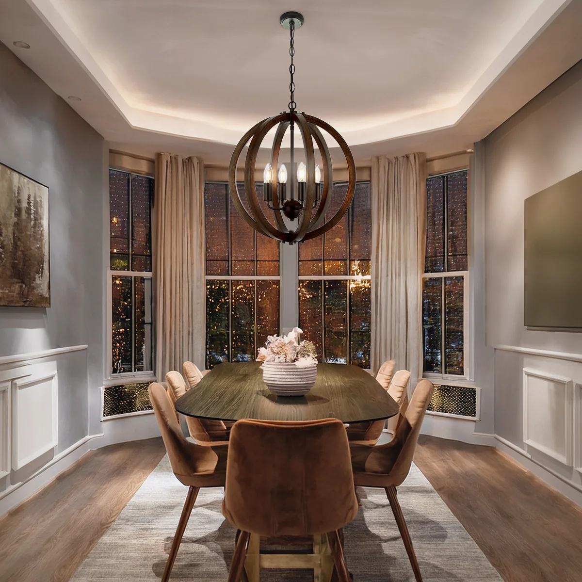 • Vestal 4 light wooden pendant is a charming light fixture available in both 4-light and 6-light configurations.