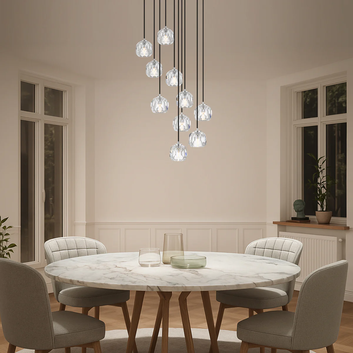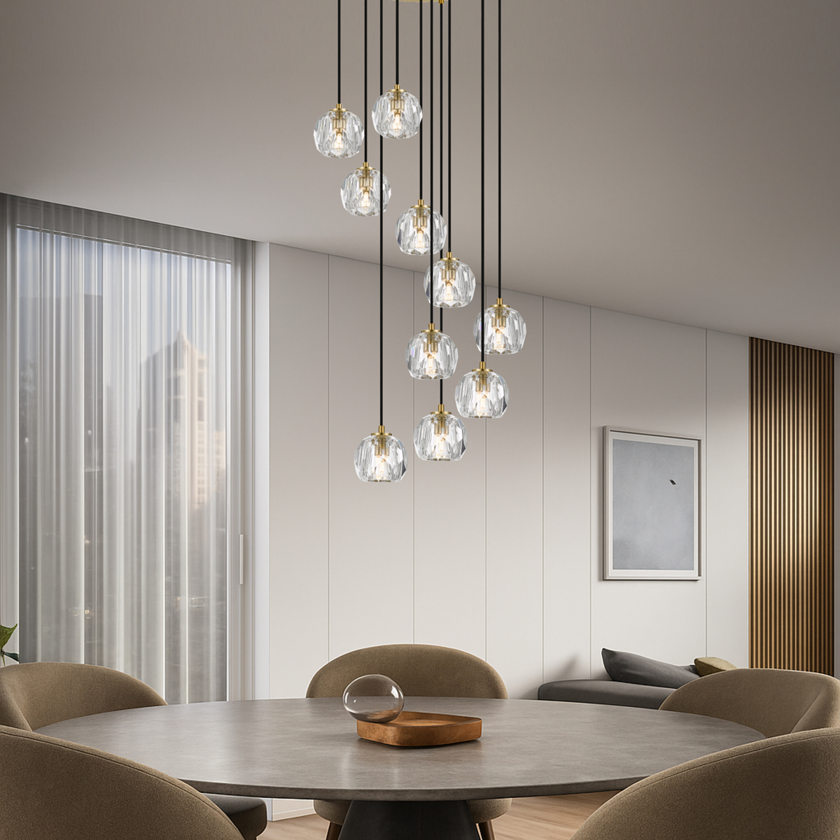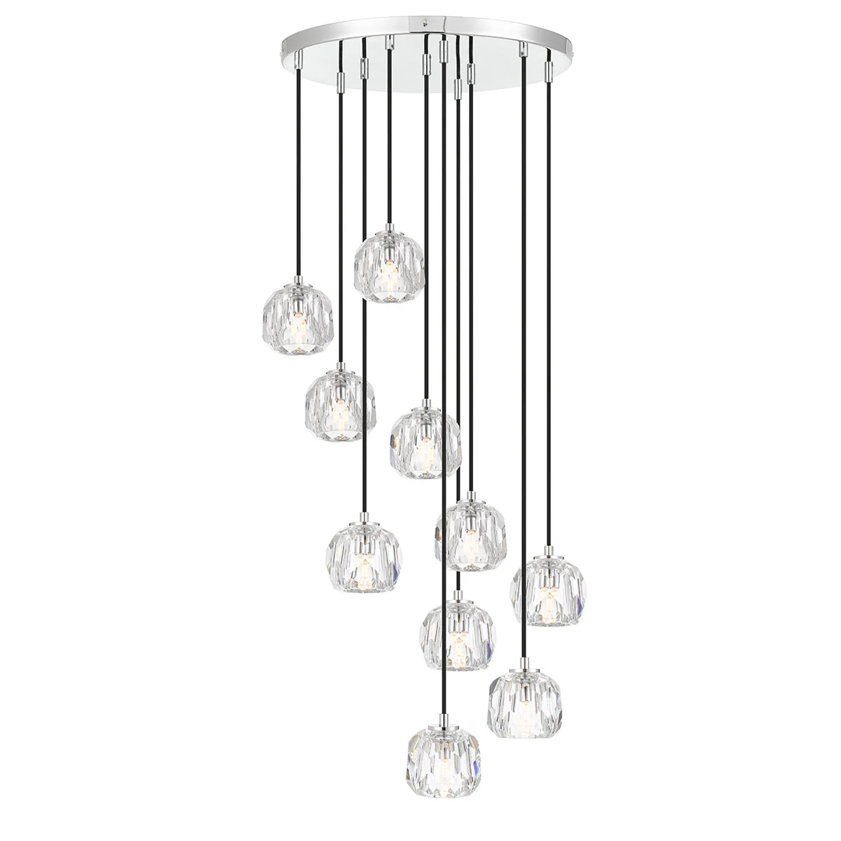 Zaha 10 Lights Round Base Crystal Glass Stairwell Pendant